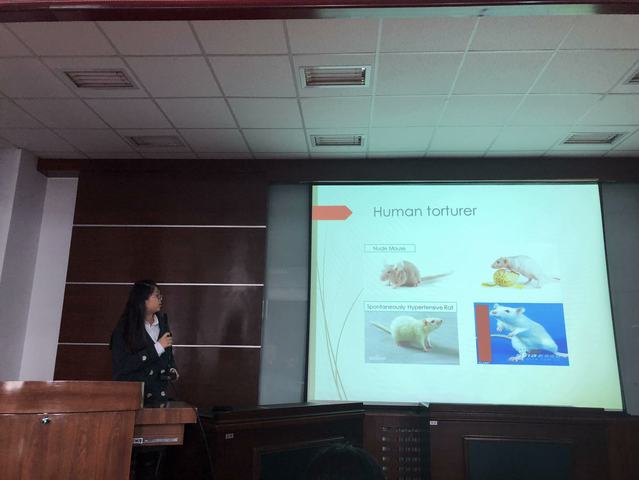 2018年10月26日早上同学们提前到达会场,在课代表潘贞明同学和赵东方同学的组织下将精心准备的海报张贴好,一张张极富创意的海报吸引了同学们纷纷驻足欣赏。随后,在柳克宁同学全英文的倾情主持中,大会正式开始。同学们以生物信息学、实验动物福利、crispr/cas9技术、DNA修复、野生动物保护等选题分别作了精彩纷呈的报告或展示,报告人或小组一次次的惊艳表现使会场一次次爆发出笑声与热烈的掌声。主持人还在会议过程中分别邀请陈璐老师和李纯锦老师对同学们的表现进行即兴点评,老师们全英文的点评以及对待学术严谨认真的态度也让同学们获益匪浅,认识到现阶段的学习积累是为今后自我价值的实现奠定坚实基础。在评奖环节,陈璐老师组织同学们用“正”字法评选出了最佳poster,王和、胡兰馨和赖伟宁同学组获得殊荣。