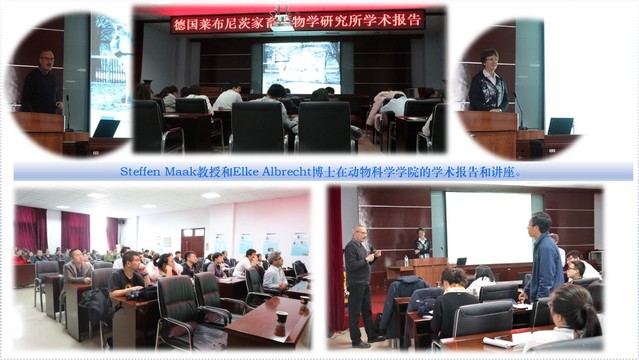 2018年11月9日上午,德国莱布尼茨家畜生物学研究所Steffen Maak教授和Elke Albrecht博士应杨润军教授邀请,在bv伟德国际1946做了题为“Introduction to the Leibniz Institute for Farm Animal Biology”和“Identification of signals influencing muscle composition and function”的学术报告和讲座,报告会由学院副院长张明军教授主持,赵志辉教授、郝琳琳教授、房希碧博士等教师,动物遗传育种与繁殖专业研究生及2016级动物科学卓越农林人才试验班同学参加了报告会。