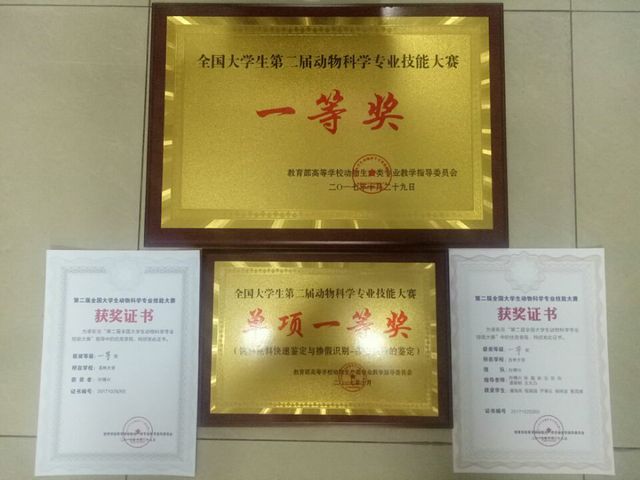 为进一步推进高等院校动物科学专业实践教学改革和实践教学体系建设,加强专业技能和实践动手能力培养,全面提高大学生的综合素质和培养质量,由教育部动物生产类专业教学指导委员会主办的第二届全国大学生动物科学专业技能大赛于2017年10月27日至10月29日在西北农林科技大学(杨凌)隆重举行,来自全国66所高校的328名大学生参加。经过一天的激烈角逐,我校bv伟德国际1946代表队在66个参赛高校中表现优异,荣获团体一等奖,单项一等奖。